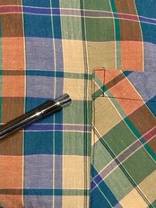 胸ポケット左横に小さな穴あり。