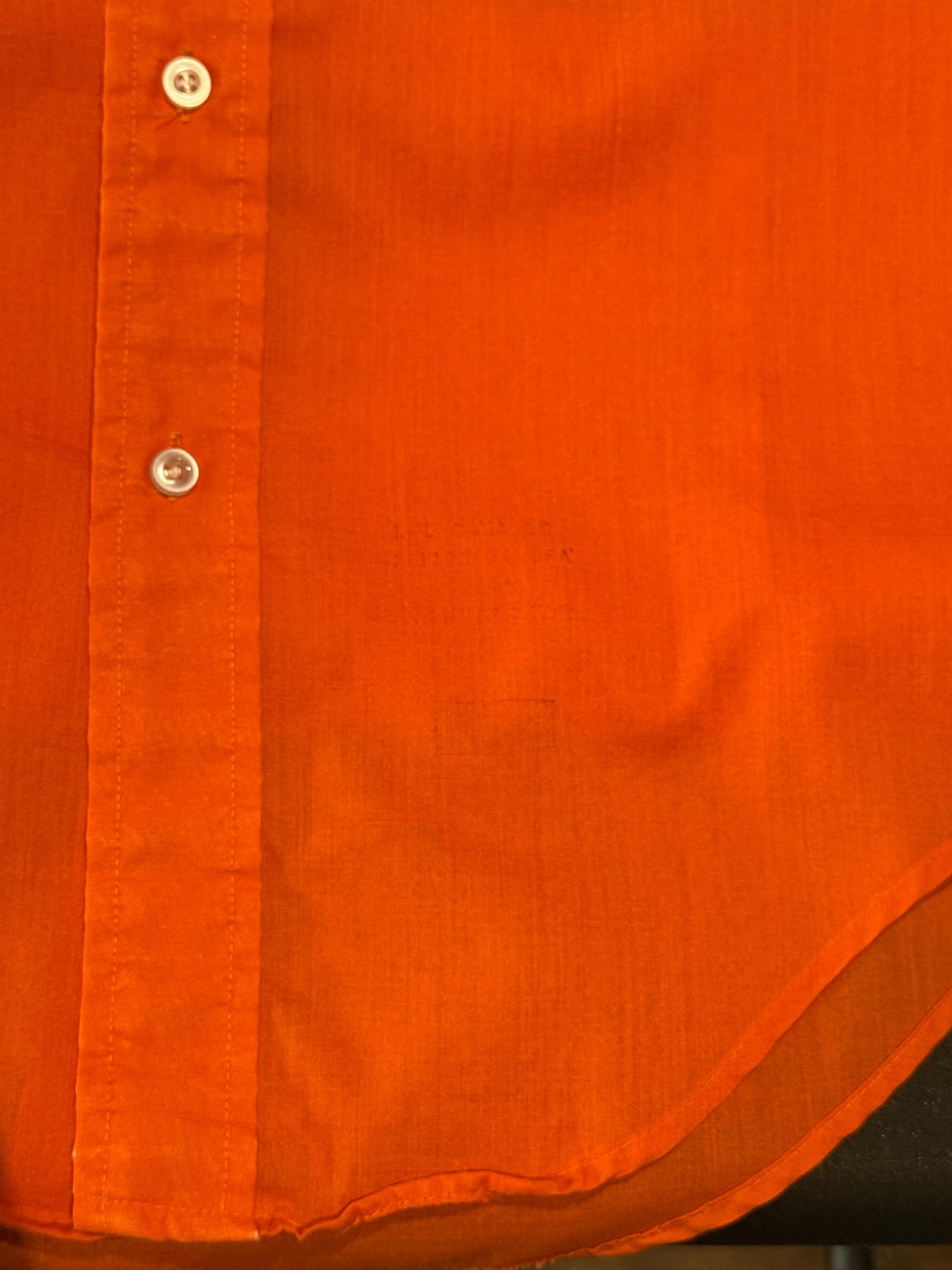 ・襟内側、第7ボタン横に商品スタンプ様の跡あり。