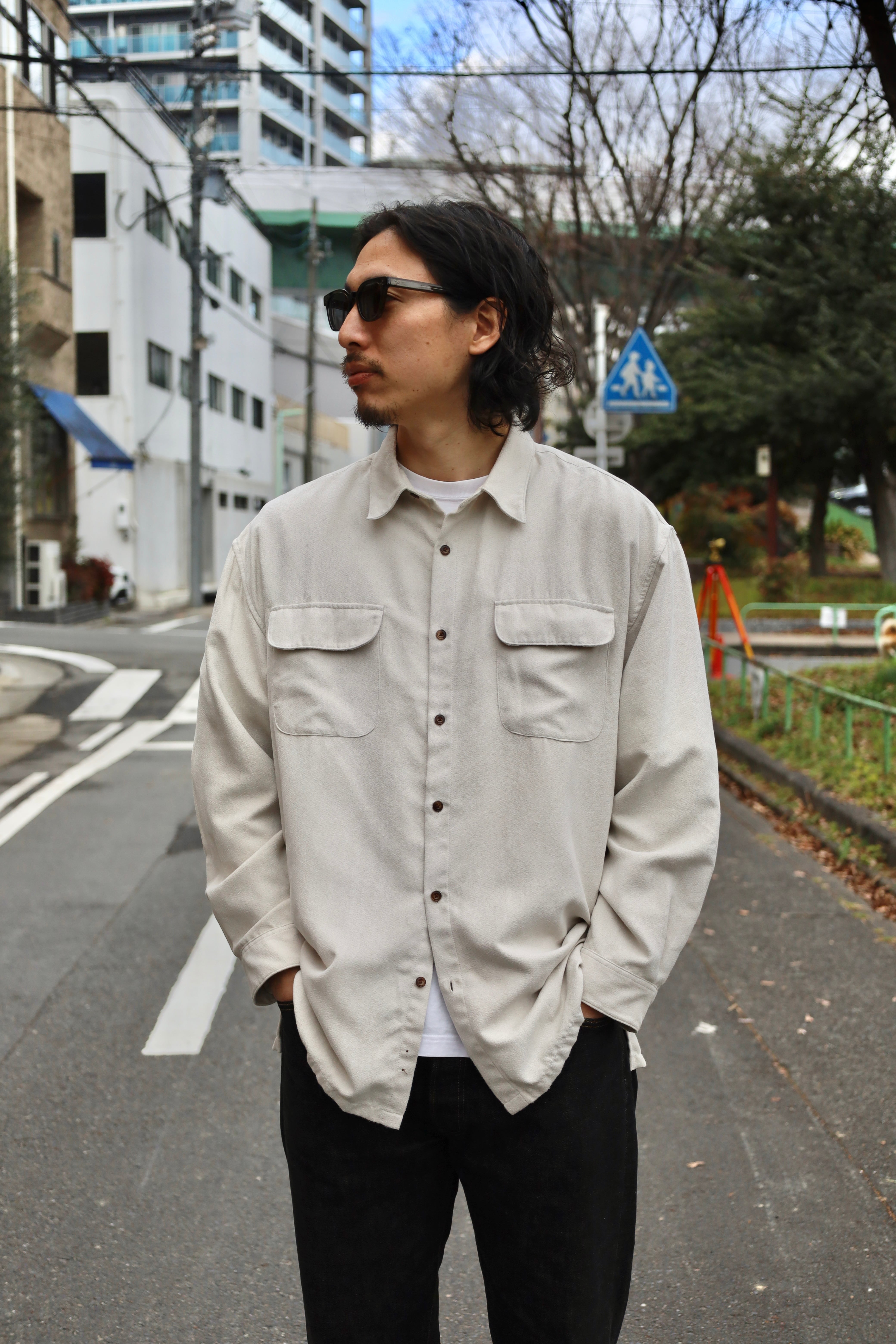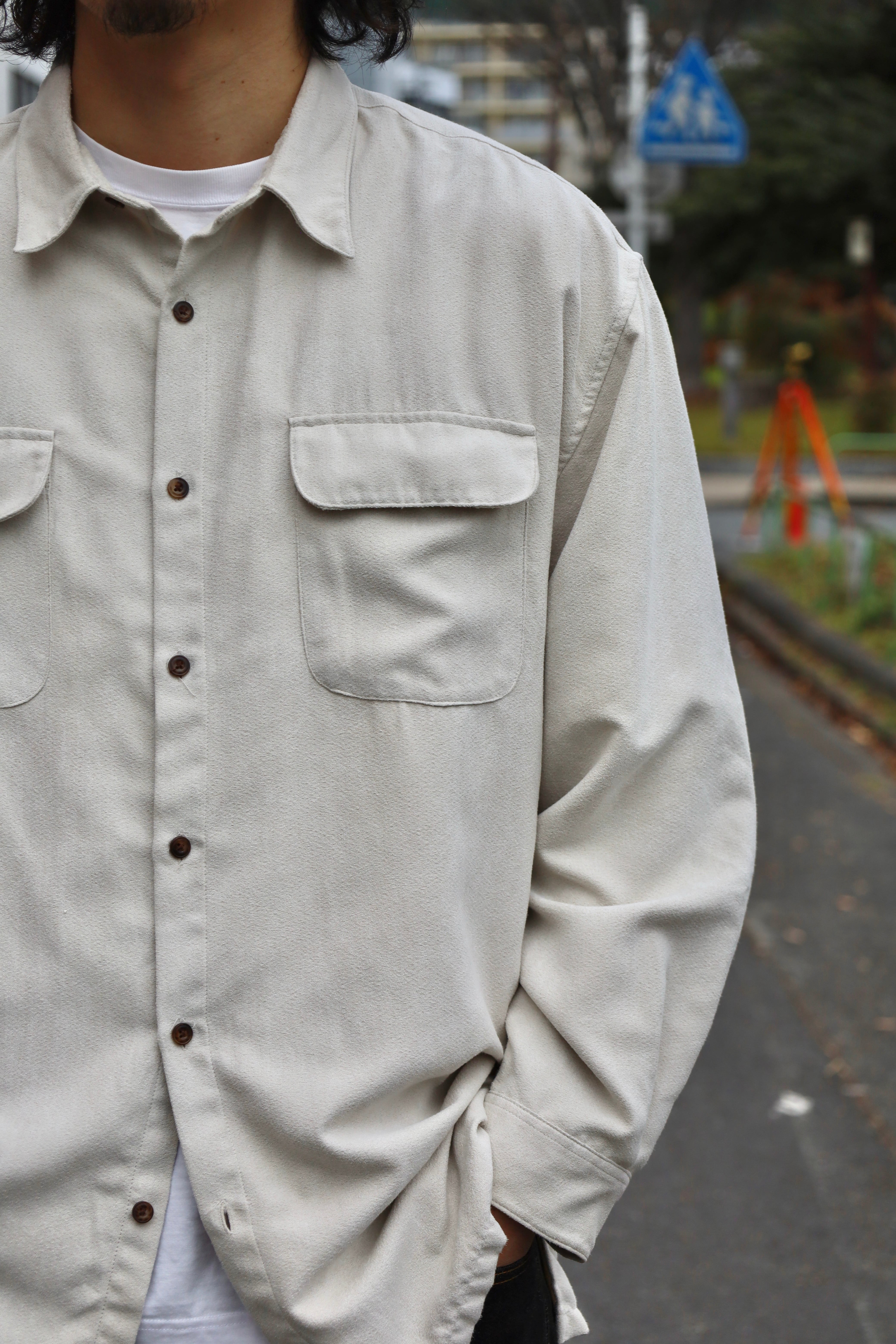 フェイク スエード シャツ スクエアカット 両胸ポケット
