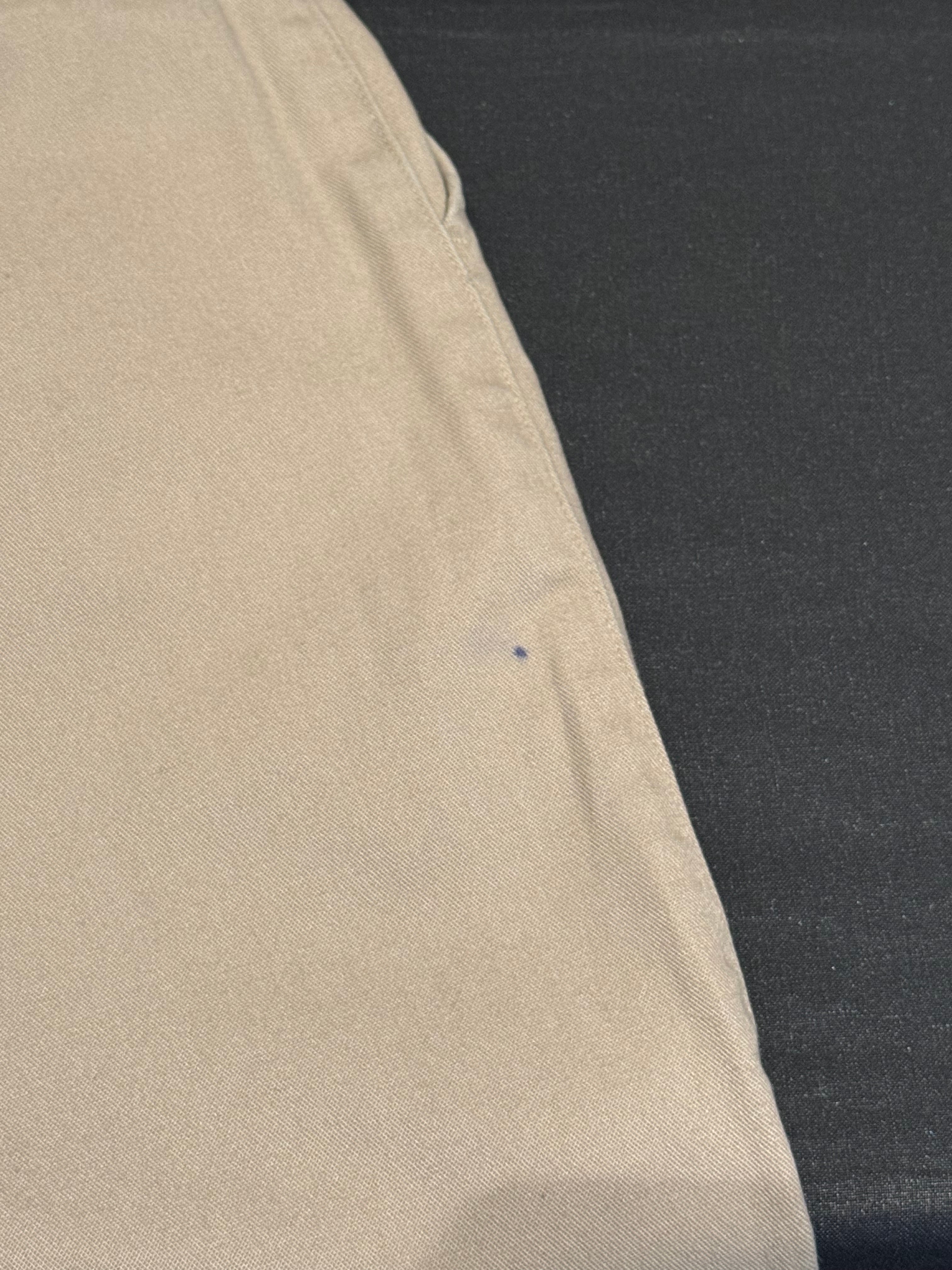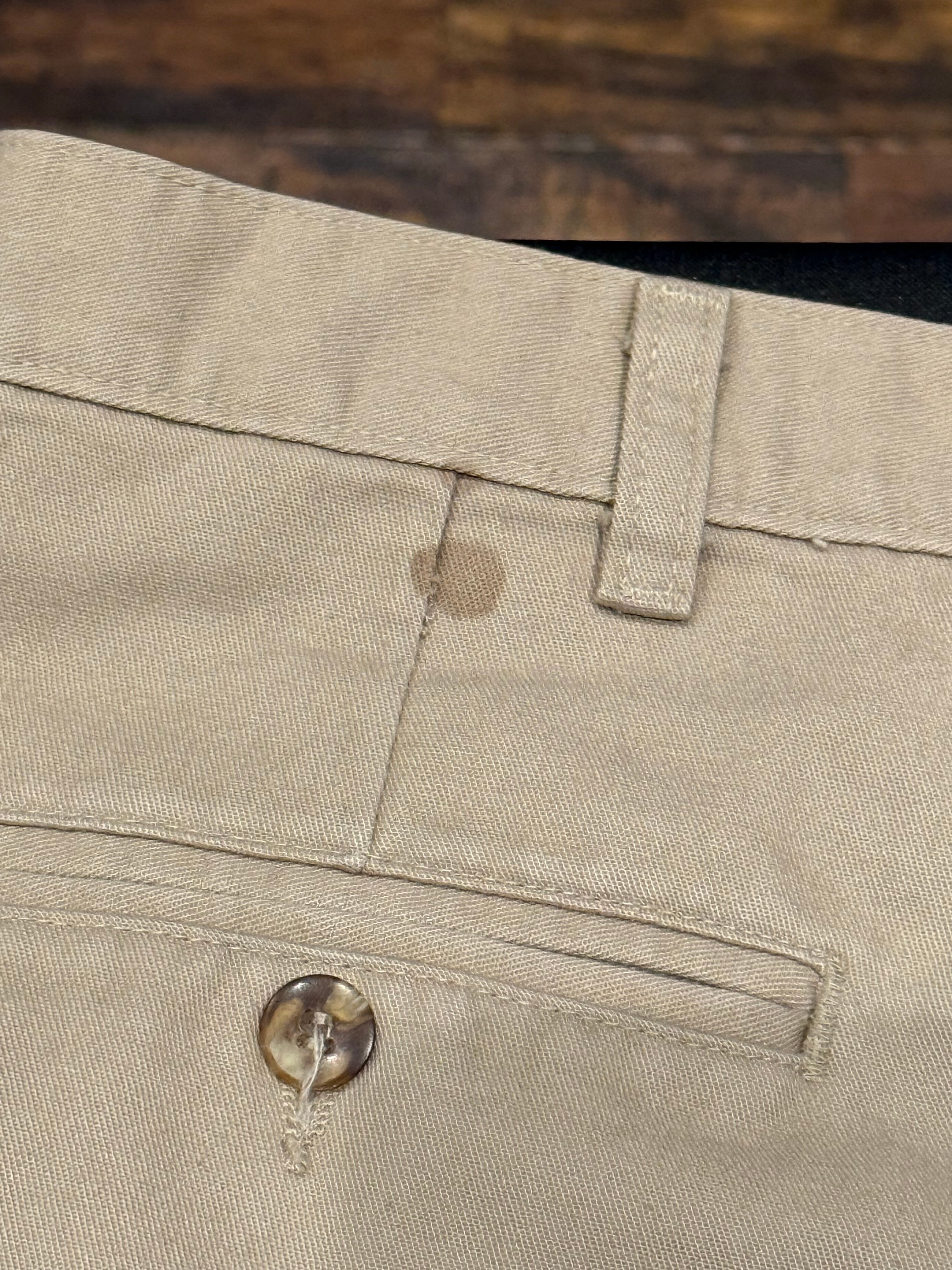 ・左バックポケット上にシミ、右サイドシーム左に黒いシミあり。